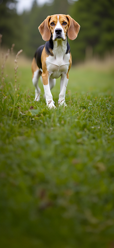 Le Beagle est une race de petit chien courant qui ressemble à un foxhound miniature. Le beagle est un chien de chasse à l'odeur, développé principalement pour la chasse au lièvre.