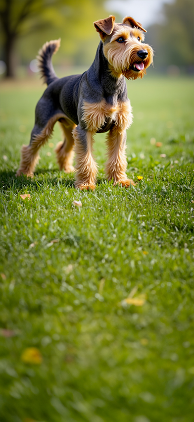 L'Airedale Terrier, souvent appelé "le roi des terriers" en raison de sa taille, est la plus grande race de terrier. Originaire de la vallée de l'Aire en Angleterre, il était initialement élevé pour la chasse.
